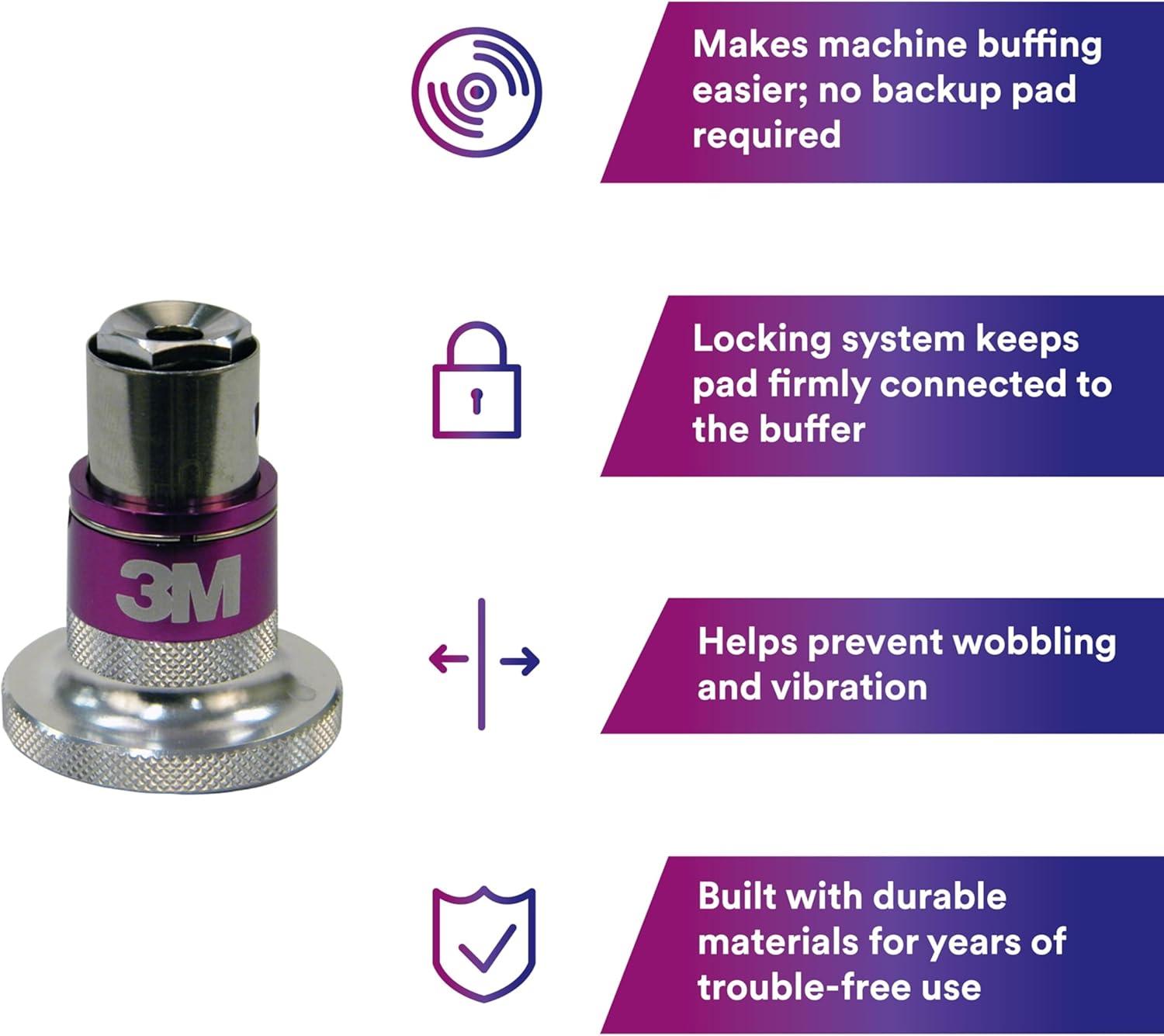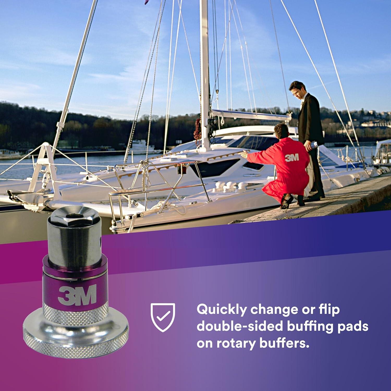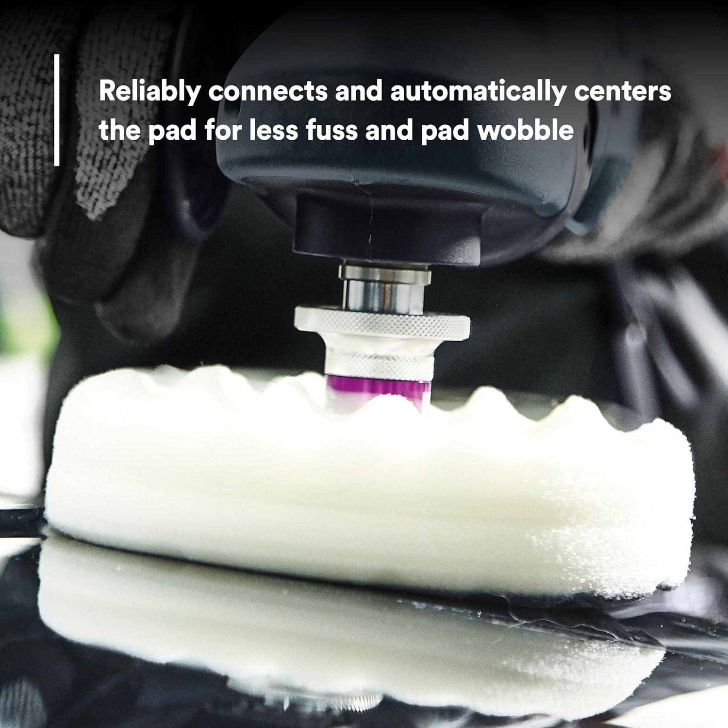 3M Perfect-It Quick Connect Adapter makes it easy to connect or disconnect double-sided buffing pads on rotary polishers. Our heavy-duty adapter saves both time and effort in an automotive body shop by making pad changes so quick and simple. 5/8″ thread.