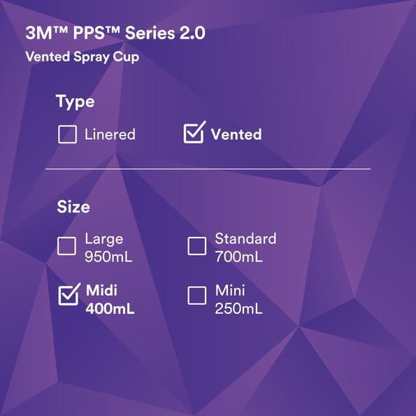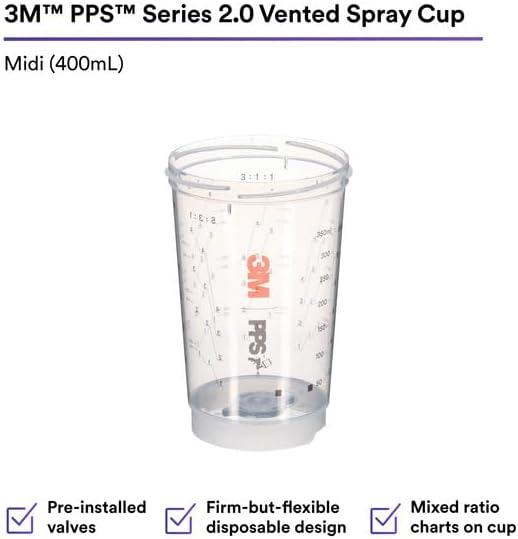 3M PPS Series 2.0 Vented Spray Cups, 13.5 fl oz, 26362, Midi, Ready to use to Mix and Spray for Automotive Paint Cars, Furniture, House and More, 50 Cups Per Pack(Midi)