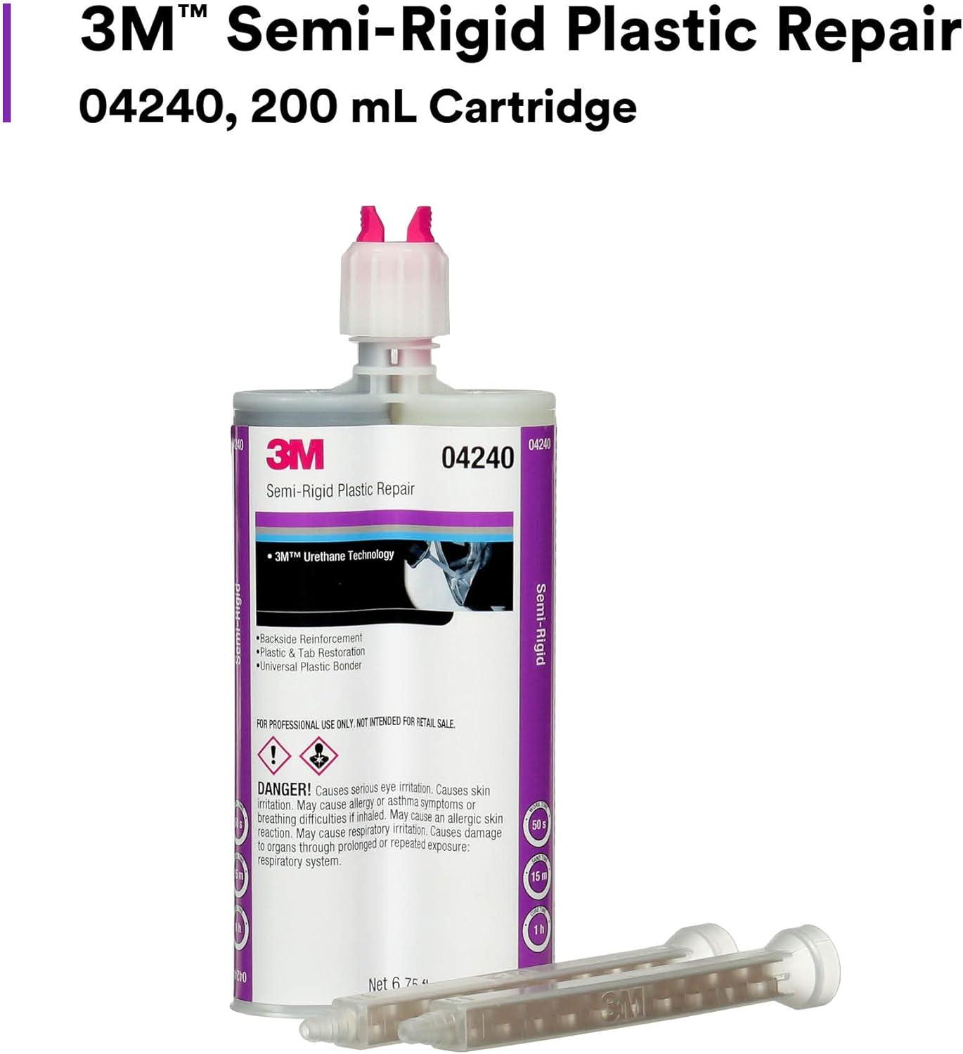 3M Semi-Rigid Plastic Repair 04240, Strong Adhesion, Long Lasting, Fast Curing, Dual Syringe, 200 mL Cartridge